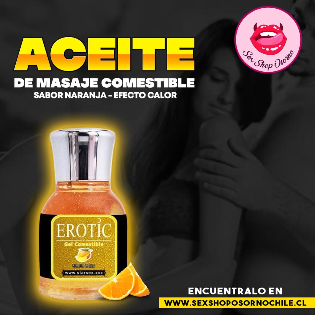 Gel comestible Erotic Naranja. Con sabor y aroma que permiten estimular los sentidos de quienes lo ocupan además de tener un increíble efecto Calor. El Gel comestible Erotic Naranja es 100% libre de azúcares, por lo que puede ser consumido las veces que se desee. No lubricante. Solo uso externo.