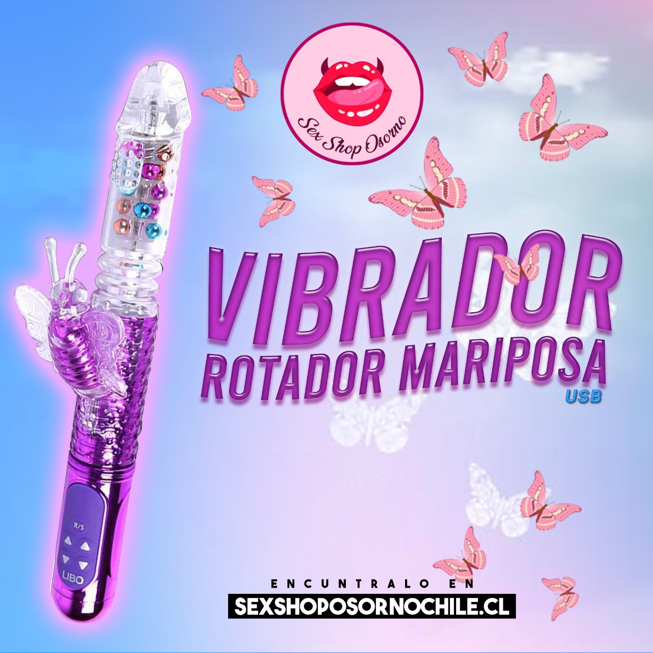 - Vibrador rotador con mariposa estimuladora de clítoris